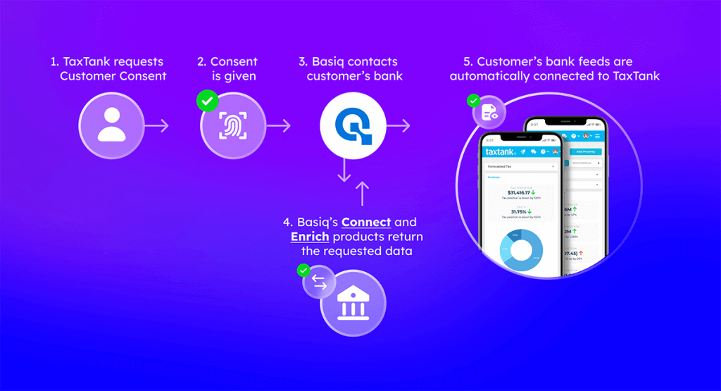 By harnessing Open Banking and Basiq’s Connect and Enrich products, TaxTank harnesses live bank feeds to run its entire platform. This live, standardised and categorised data gives individuals the ability to ensure they’re claiming everything they’re eligible for as a tax deduction (lowering the chance of human error or missing valuable deductions).